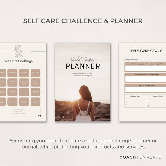 Editable Self Care Challenge Planner Journal Canva Template - 32CTSC