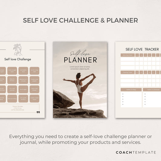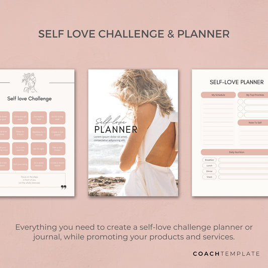 Self Love Challenge Planner Journal Editable Canva Template - CT035